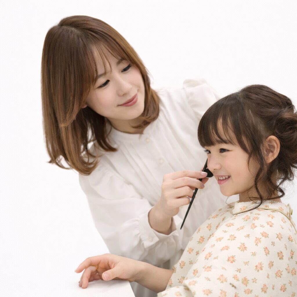 「似合う髪型がわからない」「ヘアメイクが初めてで不安」など、お悩みがありましたらまずはお気軽にご相談ください!長年の美容スタイリストの技術で一人一人その子に合わせたヘアメイクをご提供いたします。場所見知りや人見知りのお子様も思わず笑顔になれる、そんな楽しい空間づくりを目指してお支度をサポートさせていただきます!