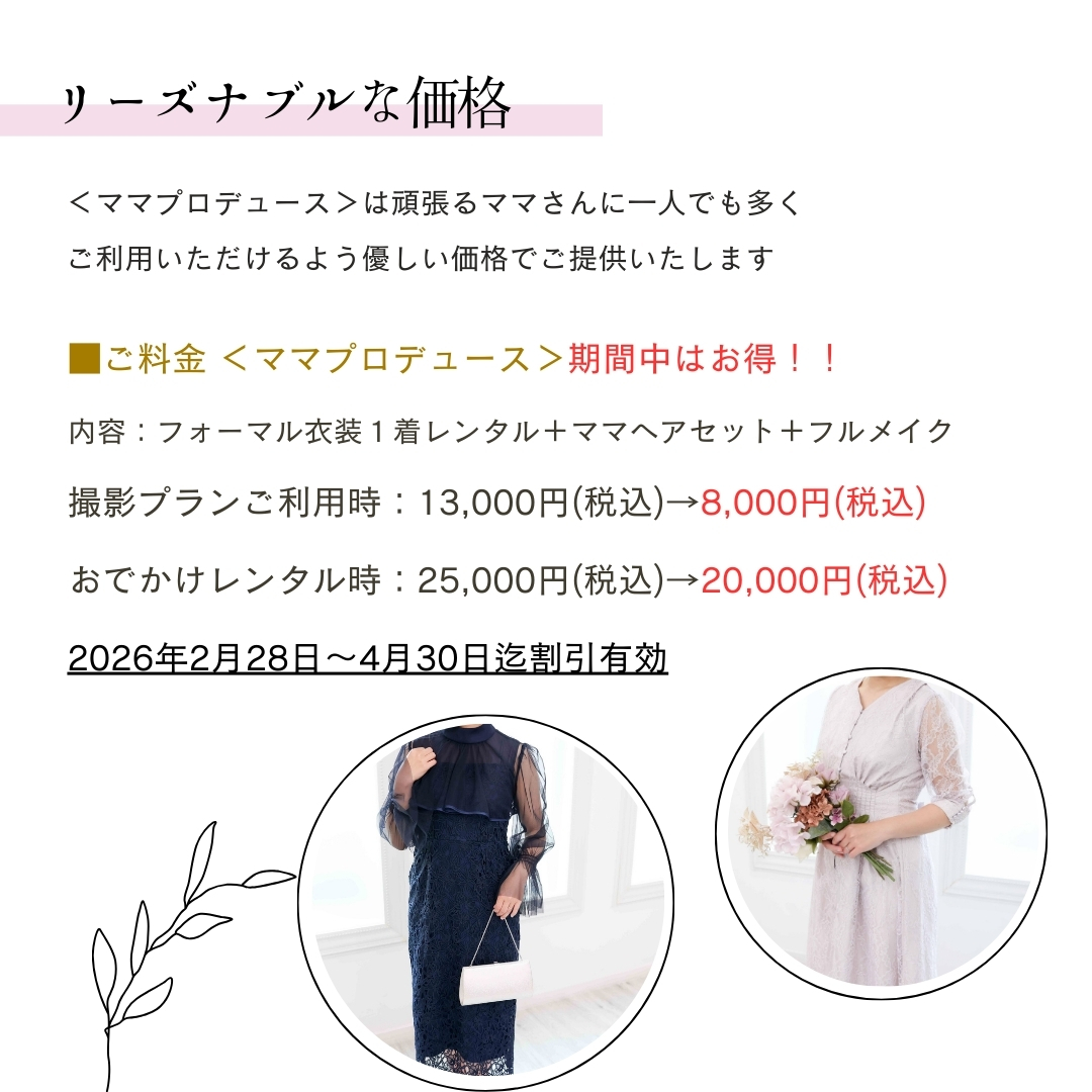 期間限定でママプロデュースセットプランがお得にご利用いただけます♪