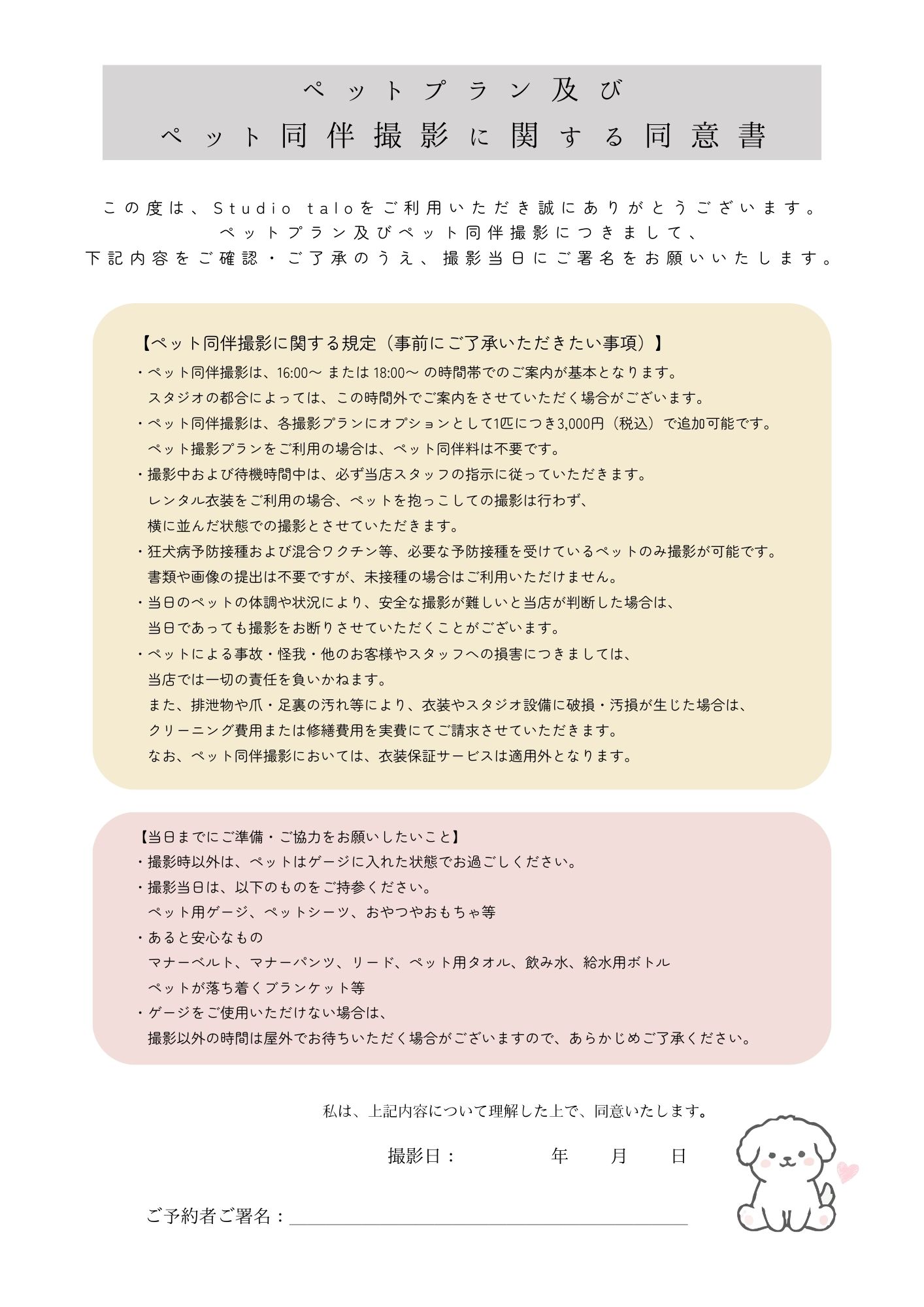 ペット撮影料金ペット同伴撮影に関する規定(事前にご了承いただきたい事項)】